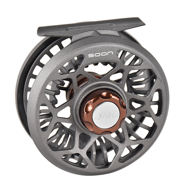 Aluminium injecté haute pression gris anthracite. Bouton et carter de frein aluminium usiné anodisé. Bobine large arbor. Réversible droitier / gaucher. Etui néoprène.